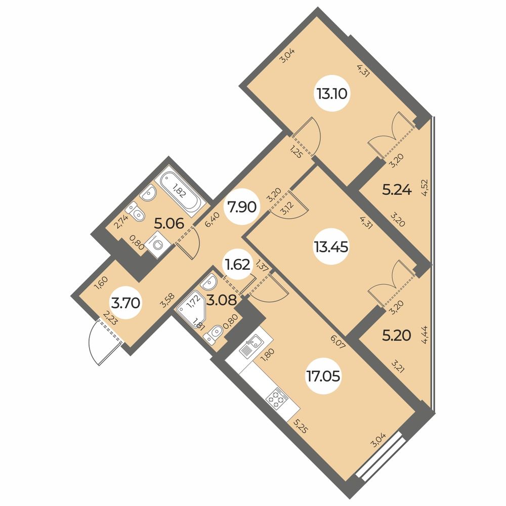 - Общая площадь 70.18 м²
