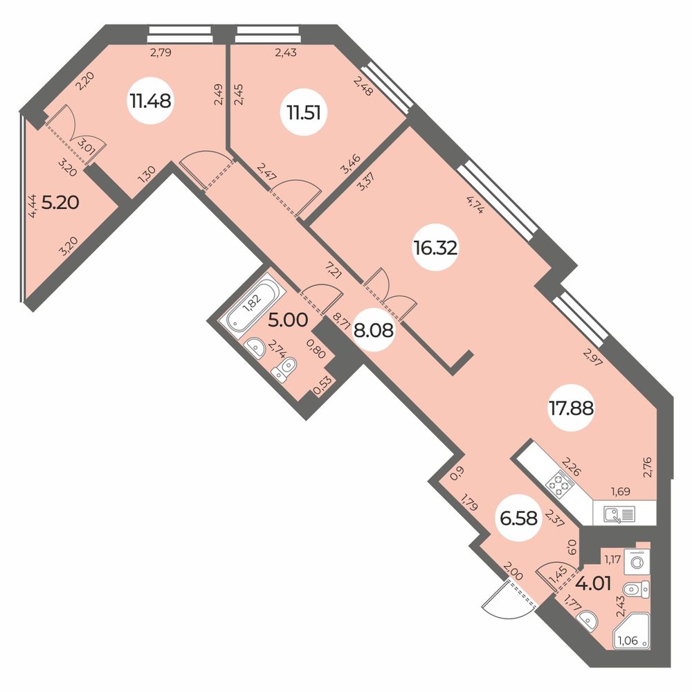 - Общая площадь 83.46 м²