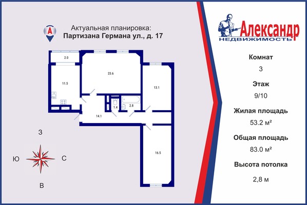 173 494 руб./м²- Санкт-Петербург г, Партизана Германа ул, д. 17