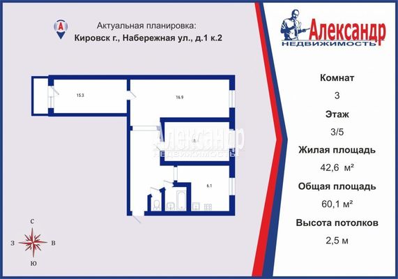 - Общая площадь 60.1 м²