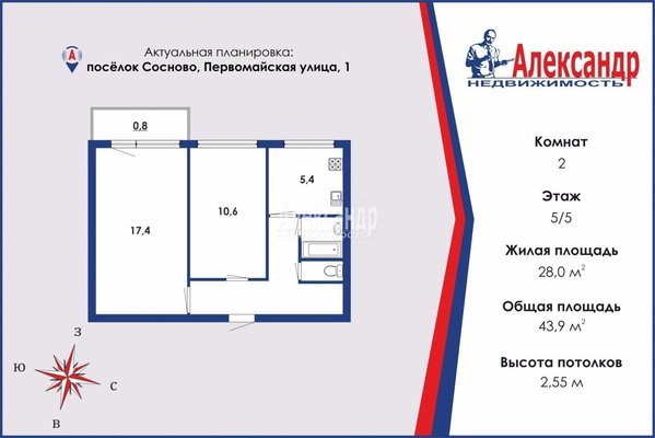 112 756 руб./м²- Ленинградская обл, Приозерский р-н, Сосново п, Первомайская ул, д. 1