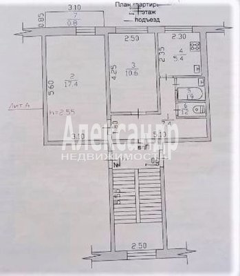 - Высота потолков, м 2.55