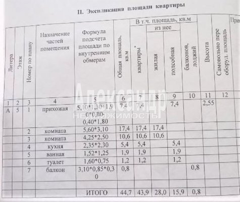 - Общая площадь 43.9 м²