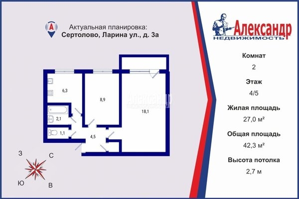 120 567 руб./м²- Ленинградская обл, Всеволожский р-н, Сертолово-1 мкр, Ларина ул, д. 3А
