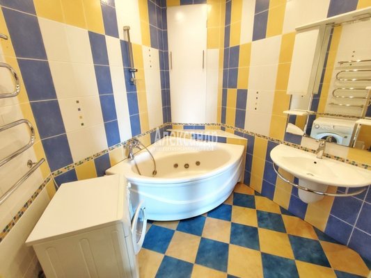 - В квартире шикарная ванная, выполненная из качественной плитки, установлена джакузи, чтобы можно было отдохнуть и максимально расслабиться после насыщенного трудового дня.