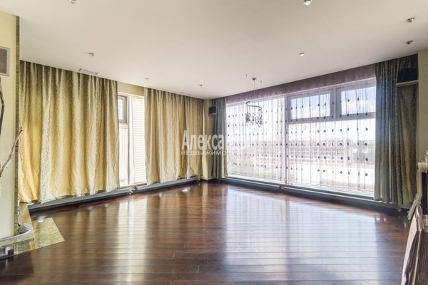 Кухня-гостиная 70 кв.м. с живописным панорамным видом на вантовый мост и залив, 4 спальни, 2 кабинета, вторая гостиная, которая может быть использована как игровая или тренажерный зал, 2 просторных санузла, 2 вместительных гардеробных, хозяйственная комната.