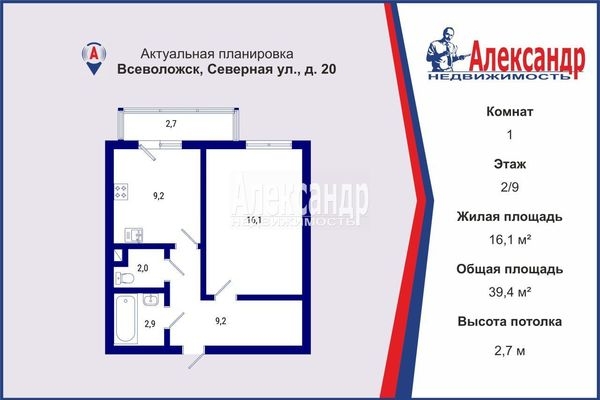 Квартира с кухней 9,2 м2 правильной квадратной формы , в прихожей место для целой гардеробной, раздельный с/у -все это позволит вам полностью эргономично использовать каждый уголок пространства..
