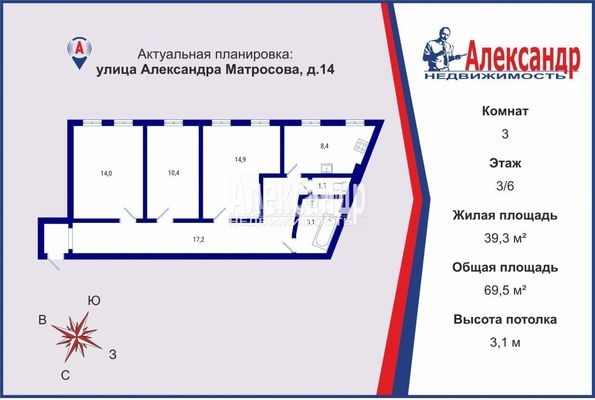 244 460 руб./м²- Санкт-Петербург г, Александра Матросова ул, д. 14