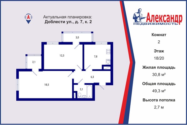 Квартира 51м2, включает две изолированные комнаты, кухню и совмещённый санузел. Два балкона с теплыми полами.