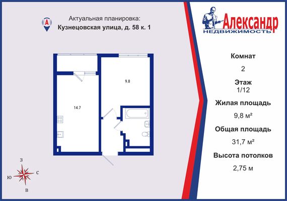 347 003 руб./м²- Санкт-Петербург г, Кузнецовская ул, д. 58к1