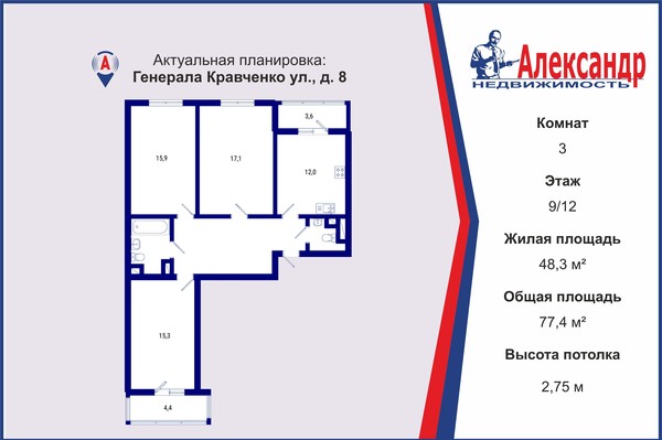 227 390 руб./м²- Санкт-Петербург г, Генерала Кравченко ул, д. 8