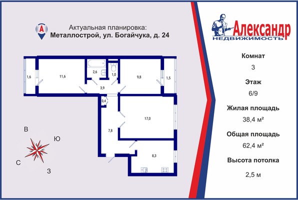 144 231 руб./м²- Санкт-Петербург г, Металлострой п, Богайчука ул, д. 24