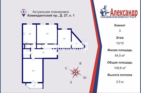 299 180 руб./м²- Санкт-Петербург г, Комендантский пр-кт, д. 27к1