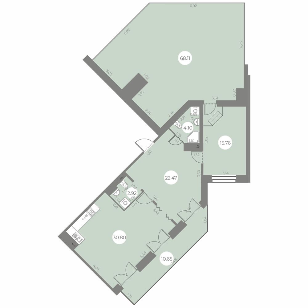- Площадь кухни 30.8 м²