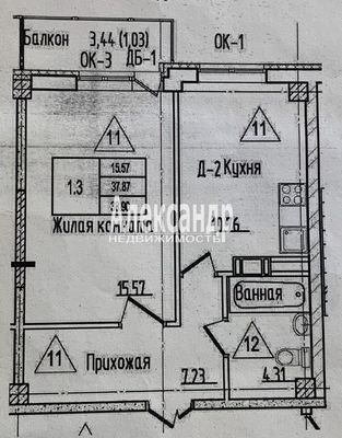 По площади: комната 15,5 кв.м., кухня 10.5, прихожая 7 кв.м., ванная 4,3 кв.м., балкон 3.4 м., по выписке ЕГРН 38 кв.м, по факту с балконом больше 40кв.м.