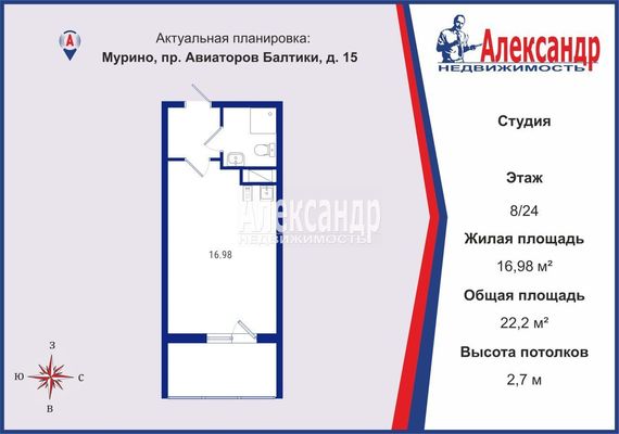 222 973 руб./м²- Ленинградская обл, Всеволожский р-н, Авиаторов Балтики пр-кт, д. 15