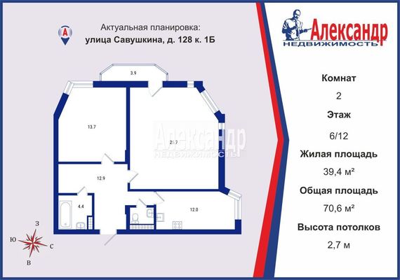 1703391 Отличная двухкомнатная квартира в Приморском р-не в идеальной локации.