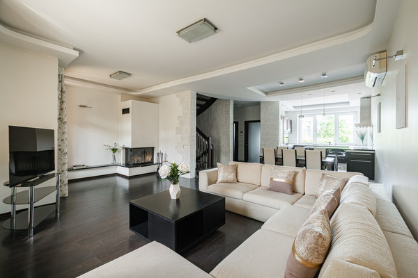 1 этаж – кухня (вся техника Electrolux)- гостиная 53,4 кв.м с действующим дровяным камином, гостевой санузел и выход на уютную террасу во внутреннем закрытом дворе, утопающем в зелени. Кондиционеры Mitsubishi.