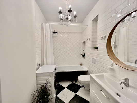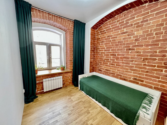 В самой квартире всё абсолютно новое. Сделан дизайнерский ремонт. Официально увеличена электроэнергия, заведено 3 фазы, до 15 квт. Сделана коллекторная разводка воды. На случай отключения горячего водоснабжения установлен бойлер 80 л. Произведена чистка вент. каналов городскими службами. Сделана тройная шумоизоляция. На больших, красивых арочных окнах, заменены стеклопакеты со спец. напылением. Восстановлена и реставрирована старинная кирпичная кладка.