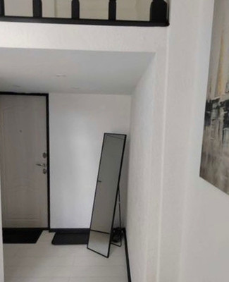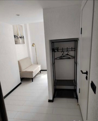 Дверь в комнату расположена в непосредственной близости от входной двери в квартиру, обеспечивая быстрый доступ в личное пространство, без необходимости проходить через общие помещения.