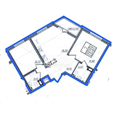 - Площадь кухни 19.39 м²