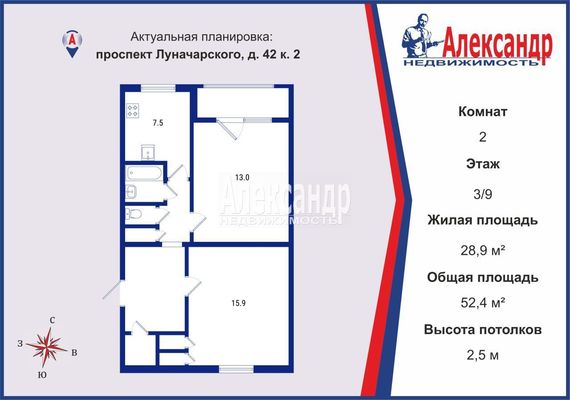 158 397 руб./м²- Санкт-Петербург, Луначарского пр-кт, 42к2