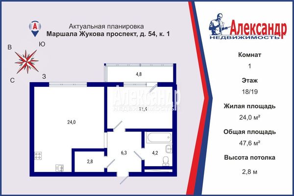273 109 руб./м²- Санкт-Петербург г, Маршала Жукова пр-кт, д. 54к1