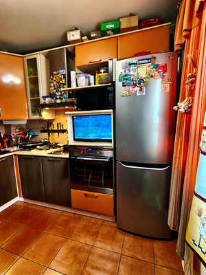 При продаже остается кухонный гарнитур с техникой Kaiser (электрическая плита, духовой шкаф, вытяжка), система хранения в кладовке. Остальная мебель и посудомоечная машина по согласованию.