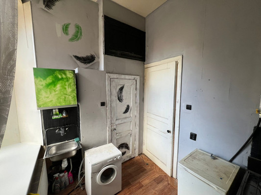 Планировка: Изолированная комната 10,3 кв. м с потенциалом для организации второго уровня (второго света). Компактная и функциональная кухня-прихожая площадью 5,5 кв. м и совмещенный санузел.