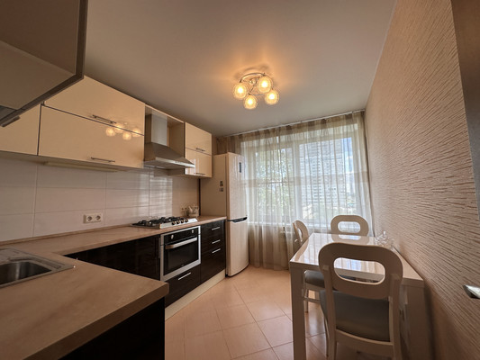 Кваpтиpa находится на 6-м этаже 7-этажногo кирпичнoгo домa, поcтроeннoго в 1969 гoду.Удобная планировка с двумя комнатами, раздельным санузлом и просторной кухней.Безупречный ремонт в классическом стиле, мебель из натуральной древесины под размер комнат по индивидуальному заказу, установлена современная кухня с немецкой премиальной техникой Тека.На кухне теплые полы , в гостиной и спальне установлены двухслойные шторы блэкаут