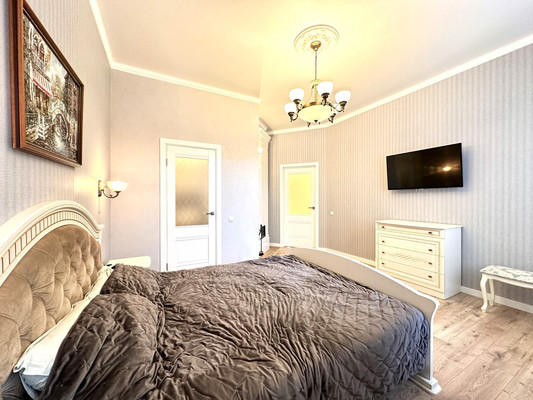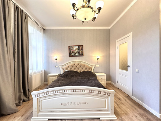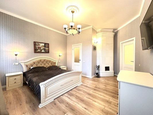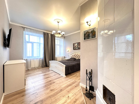 Квартира на 5 этаже, окна выходят во двор, на Северо-Восток. В квартире два входа. Выполнен качественный ремонт. Общая площадь 77.5 м2. Комнаты светлые, в каждой по два окна: 13,2 м2 +18,3 м2 с гардеробной и действующим камином. Просторная кухня-гостиная 20,4 м2, прихожая 14,6 м2, два санузла. Высота потолков 3,1 м. Дом кирпичный 1909 года постройки. Перекрытия смешанные. Есть лифт. Капитальный ремонт крыши выполнен в 2020 году, ремонт фасада в 2005 году.