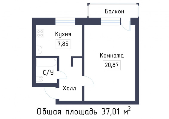 Общая площадь – 37,01 кв.м. (без учета балкона).Просторная комната (20,87 кв.м.), уютная кухня (7,85 кв.м.), совмещенный санузел. Прихожая, где есть встроенная ниша для хранения вещей, что очень удобно. Высота потолков 2,50 м. Установлены качественные стеклопакеты, окна выходят на тихий двор. Квартира очень светлая и уютная.