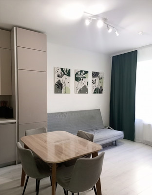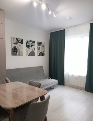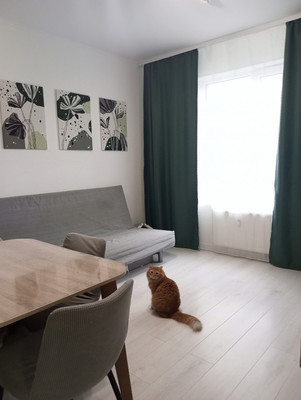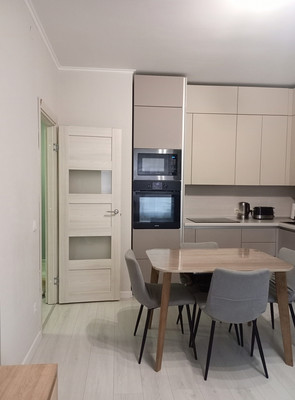 Квартира с отделкой в приятных тонах, тихая, с балкономОкна выходят во двор.Кухня-гостиная 16.7 кв.м. комнаты 10.1 и 13.5 кв.м.Общая площадь указана без учета балкона.