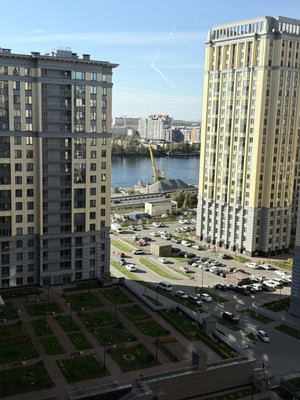 Удобная планировка на две стороны , большая кухня-гостиная, отдельная спальня. Вид с лоджии в сторону Невы и Октябрьской набережной, вид из спальни в сторону жилого квартала комфорт-класса. Дом разноэтажный, квартира расположена в угловой секции в 15-ти этажной парадной на 15-м этаже, где высота потолков 3,2 м. (на других этажах потолки ниже). На площадке 6 квартир.
