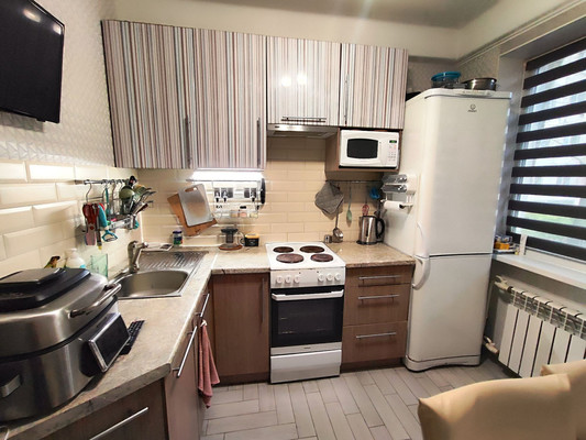 общая площадь 57,7 кв.м., комнаты 17,4+9,8+9,7 кв.м., большой коридор 10 кв.м. (возможно сделать большой встроенный шкаф) , кухня 7 кв.м. (выглядит больше). Санузел раздельный в кафеле, чистая сантехника. Отдельное помещение для стиральной машины и средств для уборки. Окна двухкамерных стеклопакеты. Новые батареи. Есть балкон (на плане не изображен, самострой, ипотека и другое подойдет).