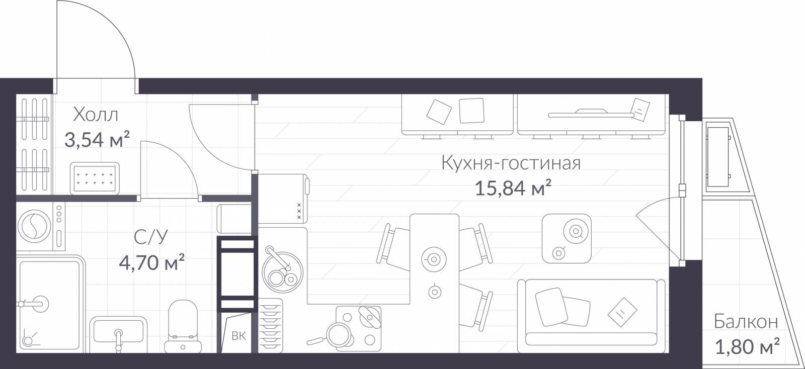 - Жилая площадь 10.84 м²
