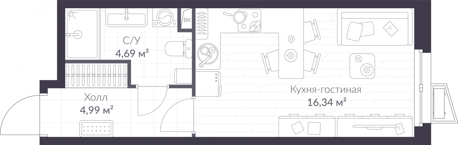 Квартира 1-комн., 26 м2, 2/11 этаж,