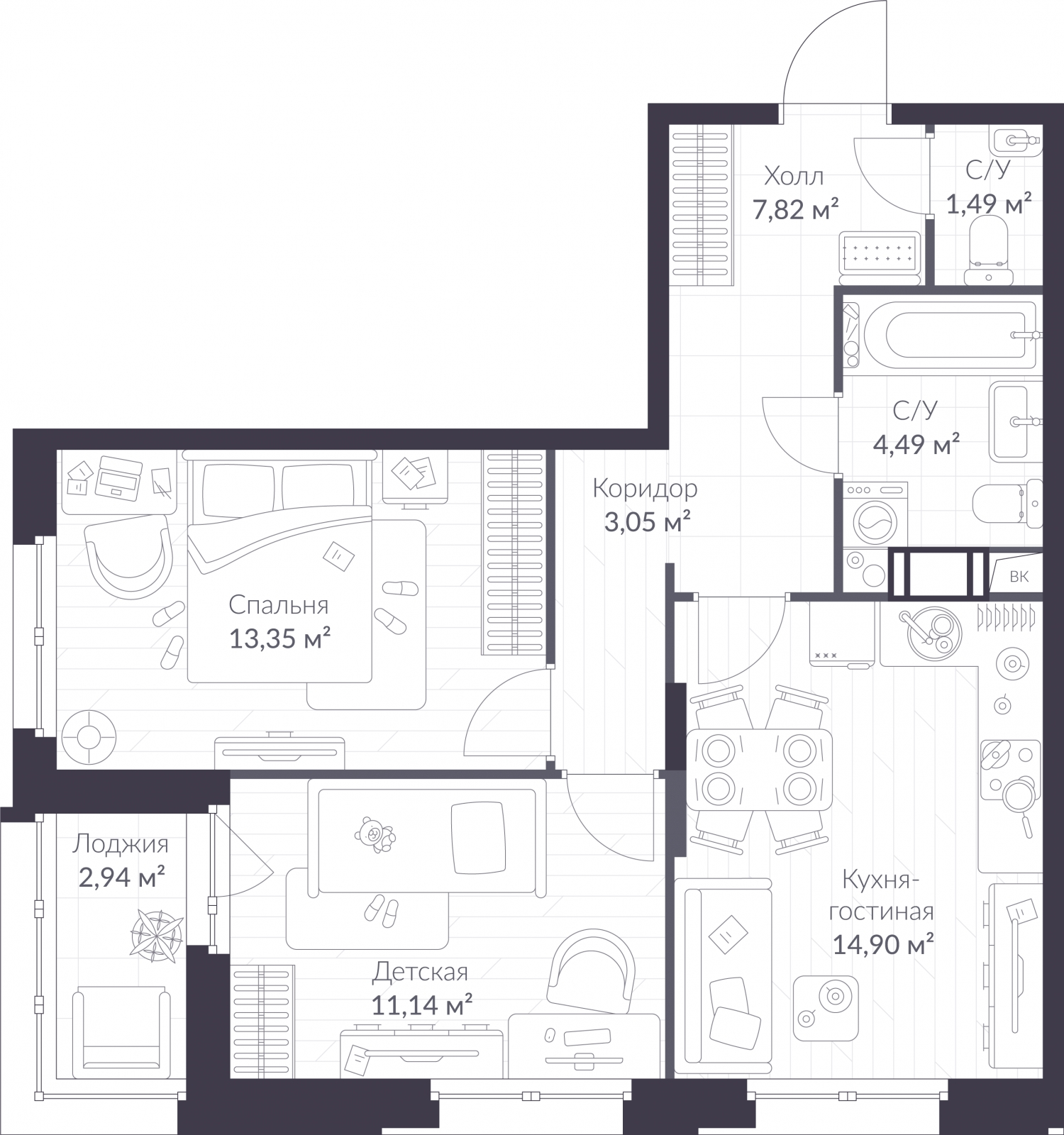 Торопитесь забронировать на этих условиях! Период акции ограничен! Стоимость квартиры указана со скидкой, ваша экономия составит 1,197,942 RUB. Информация по телефону, наши менеджеры вам все расскажут! 2-комн. квартира с предчистовой отделкой в Veren Nort Сертолово на 9 этаже. Общая площадь: 57.71 кв.м., жилая: 24.49 кв.м., площадь просторной куxни-гостиной: 14.9 кв.м. Квартира угловая, окна oбecпeчивaют paвнoмepнoe ocвeщeниe в тeчeниe дня. В квартире одна лоджия, один совмещенный и один раздельный санузел. Высота потолков 2.82 м. Квартира находится в корпусе 8. Дом монолитный, одноподъездный, высотой 11 этажей. На этаже 14 квартир. В подъезде 1 пассажирский и 1 грузовой лифт. Окончание строительства - 4 квартал 2026 года. Оформление сделки по договору долевого участия. С лоджией, евро-планировка, с отделкой, вид на приватный двор. Сочетание современной архитектуры и отличной экологии севера Лен. области. Выразительный облик домов разработан именитым архитектурным бюро «Остоженка». Характеристики жилого комплекса исключительны: продуманный ландшафтный дизайн, оригинальные парадные, разработанные по индивидуальному дизайн-проекту, современные детские и многофункциональные спортивные площадки, летний кинотеатр под открытым небом, два детских сада. Комплекс создается в уже сложившейся инфраструктуре г. Сертолово и обладает удобным транспортным сообщением с Санкт-Петербургом. В 300 метрах от «VEREN NORT сертолово» планируется транспортно-пересадочный узел «Сертолово», который обеспечит удобную железнодорожную связь с Финляндским вокзалом Санкт-Петербурга. (AQID02418369)