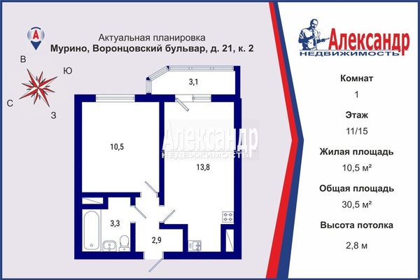 152 459 руб./м²- Ленинградская обл, Всеволожский р-н, Воронцовский б-р, д. 21к2