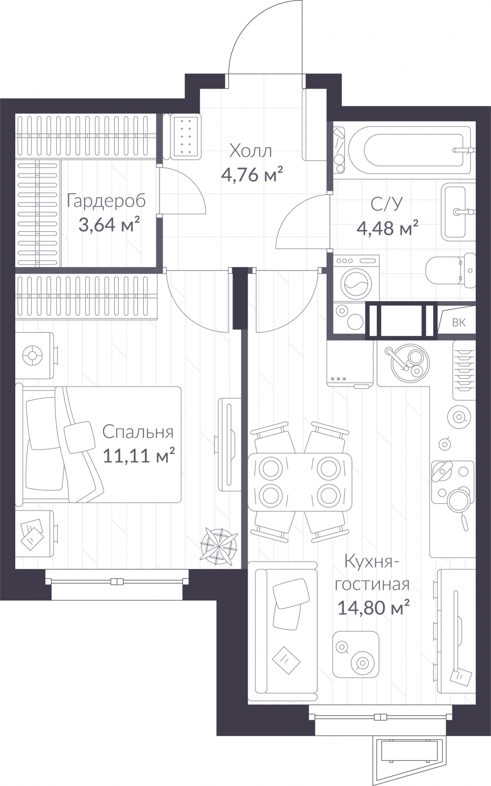 - Общая площадь 38.79 м²