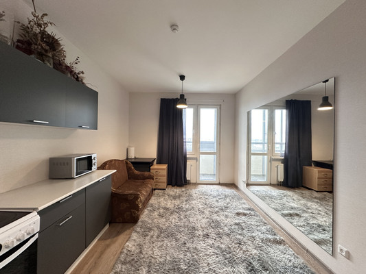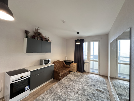 Квартира расположена на высоком 20-м этаже с открытым видом. Удобная планировка, выход на балкон с кухни, просторный санузел с ванной.