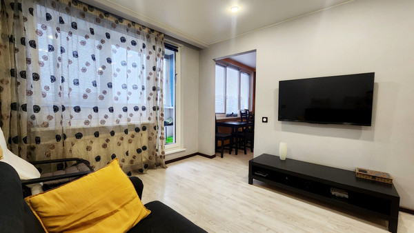 Эргономичная и продуманная планировка: просторная гостиная с присоединенной кухонной зоной, застекленный балкон, изолированная спальня, встроенная прачечная, раздельный санузел.