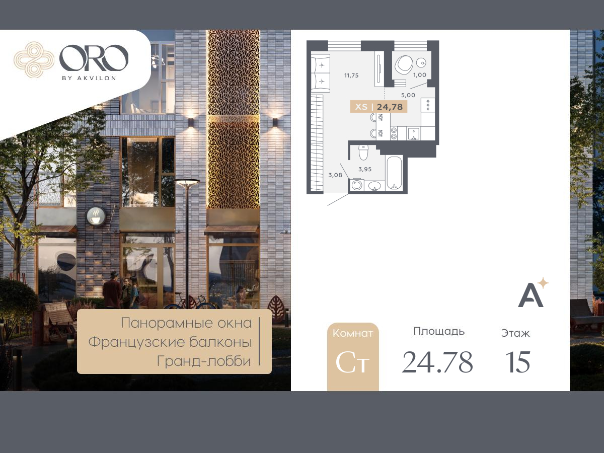 Однокомнатная квартира-студия с отделкой в ЖК "ORO by Akvilon" на 15 этаже. Общая площадь: 24.78 кв.м., площадь гостиной 16.74 кв.м., из которых 5 кв.м. выделено под кухонную зону. Все окна выходят на одну сторону. В квартире одна лоджия, один совмещенный санузел. Высота потолков 2.85 м. Дом монолитный, двухподъездный, высотой 17 этажей. Квартира находится в 1-й секции в корпусе 2. На этаже 7 квартир. В подъезде 1 пассажирский и 1 грузовой лифт. Окончание строительства - 4 квартал 2027 года. Оформление сделки по договору долевого участия. В шаговой доступности от жилого комплекса расположена станция метро (расстояние по прямой) «Звёздная» (800 м), также недалеко от этого корпуса находятся станции метро: «Купчино», «Московская», «Ленинский Проспект», «Дунайская». ЖК «ORO by Akvilon» - старт продаж жилого комплекса бизнес-класса в Московском районе. -Панорамные окна в пол во всех квартирах -Алюминиевые оконные профили с многокамерными стеклопакетами -Французские балконы с золотой окантовкой -Высота этажа – 3,15 метра -Увеличенные дверные проемы - 2,3 метров высотой -Выделенные места для кондиционеров на каждом этаже -Фреоновые трубки заведенные в квартиру от мест установки внешних блоков кондиционеров -Дизайнерская отделка гранд-лобби с биокамином и золотыми элементами -Импортные бесшумные лифты с дизайнерской отделкой и увеличенной высотой кабины Отделка квартир Премиальная отделка в двух цветовых решениях: Beigestone и Greystone. Дозаказ для любой квартиры Стандарты Группы Аквилон для вашей комфортной жизни Thermo-S – экономия на коммунальных платежах за счет дополнительно утепленных стен, кровли и цоколя. Энергоэффективные окна с селективным покрытием и аргоновым заполнением Soundstop - дополнительная шумоизоляция внутренних перегородок и межэтажных перекрытий, шумозащитные окна, малошумные лифты Light-in - в квартирах комфортный микроклимат. Многокамерные стеклопакеты сохраняют тепло зимой и отсеивают излишки излучения солнечного света летом, сохраняя прохладу в помещении. Vent-in - в каждой комнате есть клапаны индивидуальной вентиляции, которые обеспечивают приток свежего воздуха с улицы. inHOME – умный дом в каждой квартире Интеллектуальная цифровая система, которая позволит дистанционно решать бытовые вопросы, управлять квартирой и экономить на оплате коммунальных услуг. В состав inHOME входят: IP-домофон, Face key, «умные» счетчики, датчики протечки, дистанционное отключение розеток, и т.д. Подземный паркинг -Лифты в каждой секции со спуском в паркинг -Отделка лифтовых холлов паркинга в стиле Гранд лобби + дизайнерская навигация самого паркинга -Возможность установки электрозарядки в паркинге или на территории ЖК -GSM усилитель в паркинге Двор -Ландшафтный дизайн с геопластикой и цветочными аркадами -Сад цветущих сезонов -Разноуровневая подсветка -Детские площадки нового поколения -Живой “зелёный забор” -Закрытый двор без машин Локация -7 мин. до м. Звездная -10 мин. до м. Московская -15 мин. до аэропорта Пулково -30 мин. до Невского пр. (AQID02527961)