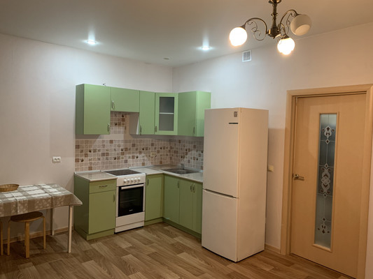В квартире установлена кухня, которая остается покупателю, ванная комната полностью оснащена всем необходимым включая стиральную машину, которая так же остается. С лоджии открывается красивый вид. На первом этаже детский садик, который обеспечивает безопасность и бесперебойное передачу воды и тепла.