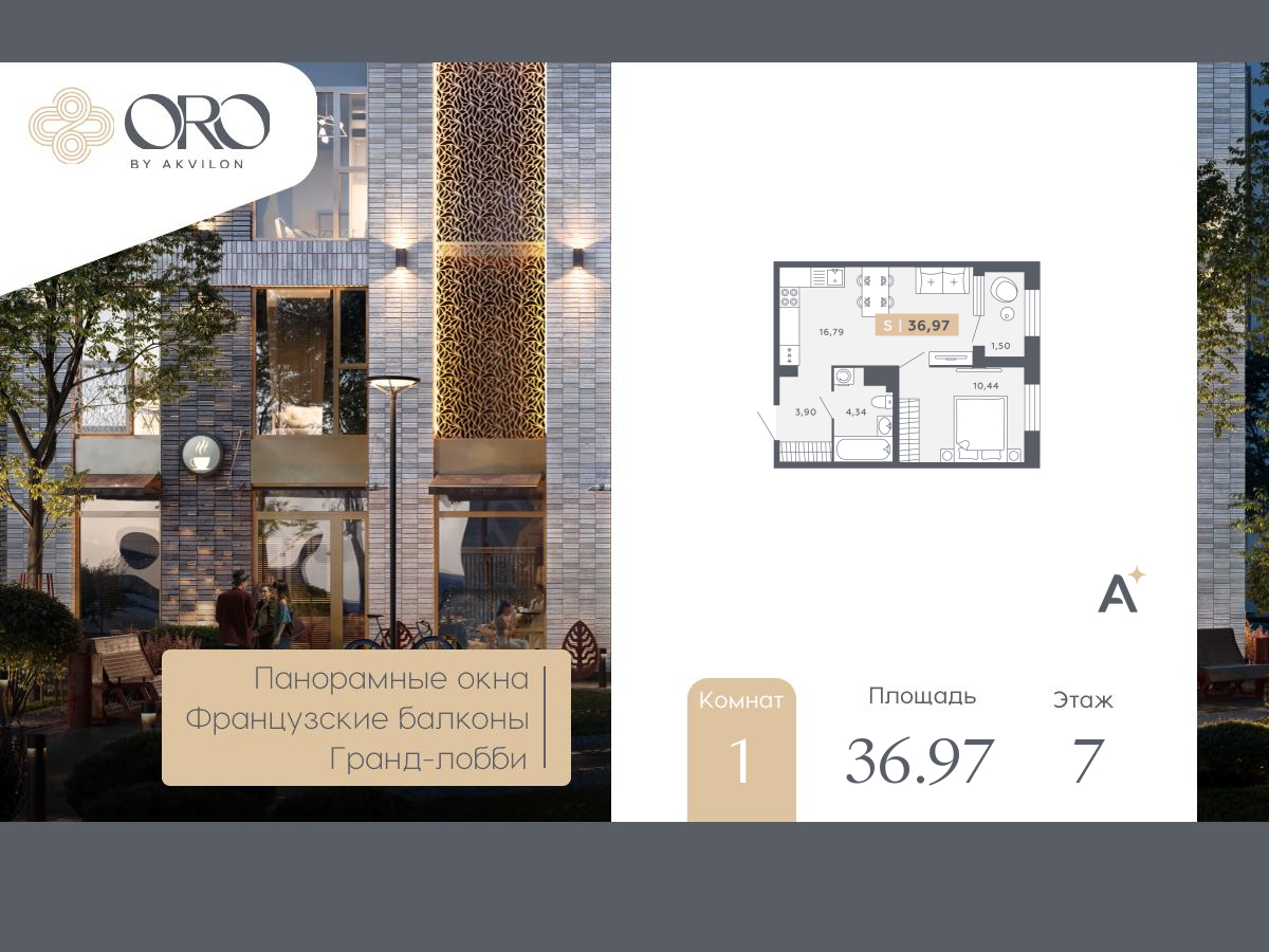 1-комн. квартира с отделкой в ЖК "ORO by Akvilon" на 7 этаже. Общая площадь: 36.97 кв.м., жилая: 10.44 кв.м., площадь просторной кухни-столовой: 16.79 кв.м. Все окна выходят на одну сторону. В квартире одна лоджия, один совмещенный санузел. Высота потолков 2.85 м. Квартира находится в корпусе 1. Дом монолитный, одноподъездный, высотой 17 этажей. На этаже 12 квартир. В подъезде 1 пассажирский и 1 грузовой лифт. Окончание строительства - 4 квартал 2027 года. Оформление сделки по договору долевого участия. В шаговой доступности от дома расположена станция метро (расстояние по прямой) «Звёздная» (800 м), также недалеко от этого корпуса расположены станции метро: «Купчино», «Московская», «Ленинский Проспект», «Дунайская». ЖК «ORO by Akvilon» - старт продаж жилого комплекса бизнес-класса в Московском районе. -Панорамные окна в пол во всех квартирах -Алюминиевые оконные профили с многокамерными стеклопакетами -Французские балконы с золотой окантовкой -Высота этажа – 3,15 метра -Увеличенные дверные проемы - 2,3 метров высотой -Выделенные места для кондиционеров на каждом этаже -Фреоновые трубки заведенные в квартиру от мест установки внешних блоков кондиционеров -Дизайнерская отделка гранд-лобби с биокамином и золотыми элементами -Импортные бесшумные лифты с дизайнерской отделкой и увеличенной высотой кабины Отделка квартир Премиальная отделка в двух цветовых решениях: Beigestone и Greystone. Дозаказ для любой квартиры Стандарты Группы Аквилон для вашей комфортной жизни Thermo-S – экономия на коммунальных платежах за счет дополнительно утепленных стен, кровли и цоколя. Энергоэффективные окна с селективным покрытием и аргоновым заполнением Soundstop - дополнительная шумоизоляция внутренних перегородок и межэтажных перекрытий, шумозащитные окна, малошумные лифты Light-in - в квартирах комфортный микроклимат. Многокамерные стеклопакеты сохраняют тепло зимой и отсеивают излишки излучения солнечного света летом, сохраняя прохладу в помещении. Vent-in - в каждой комнате есть клапаны индивидуальной вентиляции, которые обеспечивают приток свежего воздуха с улицы. inHOME – умный дом в каждой квартире Интеллектуальная цифровая система, которая позволит дистанционно решать бытовые вопросы, управлять квартирой и экономить на оплате коммунальных услуг. В состав inHOME входят: IP-домофон, Face key, «умные» счетчики, датчики протечки, дистанционное отключение розеток, и т.д. Подземный паркинг -Лифты в каждой секции со спуском в паркинг -Отделка лифтовых холлов паркинга в стиле Гранд лобби + дизайнерская навигация самого паркинга -Возможность установки электрозарядки в паркинге или на территории ЖК -GSM усилитель в паркинге Двор -Ландшафтный дизайн с геопластикой и цветочными аркадами -Сад цветущих сезонов -Разноуровневая подсветка -Детские площадки нового поколения -Живой “зелёный забор” -Закрытый двор без машин Локация -7 мин. до м. Звездная -10 мин. до м. Московская -15 мин. до аэропорта Пулково -30 мин. до Невского пр. (AQID02527947)