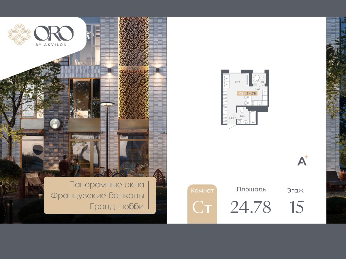 Продается однокомнатная квартира-студия с отделкой в ЖК "ORO by Akvilon" на 15 этаже. Общая площадь: 24.78 кв.м., площадь гостиной 16.74 кв.м., из которых 5 кв.м. выделено под кухонную зону. Все окна выходят на одну сторону. В квартире одна лоджия, один совмещенный санузел. Высота потолков 2.85 м. Дом монолитный, двухподъездный, высотой 17 этажей. Квартира находится в 1-й секции в корпусе 2. На этаже 7 квартир. В подъезде 1 пассажирский и 1 грузовой лифт. Окончание строительства - 4 квартал 2027 года. Оформление сделки по договору долевого участия. В шаговой доступности от жилого комплекса имеется станция метро (расстояние по прямой) «Звёздная» (800 м), также недалеко от этого корпуса находятся станции метро: «Купчино», «Московская», «Ленинский Проспект», «Дунайская». ЖК «ORO by Akvilon» - старт продаж жилого комплекса бизнес-класса в Московском районе. -Панорамные окна в пол во всех квартирах -Алюминиевые оконные профили с многокамерными стеклопакетами -Французские балконы с золотой окантовкой -Высота этажа – 3,15 метра -Увеличенные дверные проемы - 2,3 метров высотой -Выделенные места для кондиционеров на каждом этаже -Фреоновые трубки заведенные в квартиру от мест установки внешних блоков кондиционеров -Дизайнерская отделка гранд-лобби с биокамином и золотыми элементами -Импортные бесшумные лифты с дизайнерской отделкой и увеличенной высотой кабины Отделка квартир Премиальная отделка в двух цветовых решениях: Beigestone и Greystone. Дозаказ для любой квартиры Стандарты Группы Аквилон для вашей комфортной жизни Thermo-S – экономия на коммунальных платежах за счет дополнительно утепленных стен, кровли и цоколя. Энергоэффективные окна с селективным покрытием и аргоновым заполнением Soundstop - дополнительная шумоизоляция внутренних перегородок и межэтажных перекрытий, шумозащитные окна, малошумные лифты Light-in - в квартирах комфортный микроклимат. Многокамерные стеклопакеты сохраняют тепло зимой и отсеивают излишки излучения солнечного света летом, сохраняя прохладу в помещении. Vent-in - в каждой комнате есть клапаны индивидуальной вентиляции, которые обеспечивают приток свежего воздуха с улицы. inHOME – умный дом в каждой квартире Интеллектуальная цифровая система, которая позволит дистанционно решать бытовые вопросы, управлять квартирой и экономить на оплате коммунальных услуг. В состав inHOME входят: IP-домофон, Face key, «умные» счетчики, датчики протечки, дистанционное отключение розеток, и т.д. Подземный паркинг -Лифты в каждой секции со спуском в паркинг -Отделка лифтовых холлов паркинга в стиле Гранд лобби + дизайнерская навигация самого паркинга -Возможность установки электрозарядки в паркинге или на территории ЖК -GSM усилитель в паркинге Двор -Ландшафтный дизайн с геопластикой и цветочными аркадами -Сад цветущих сезонов -Разноуровневая подсветка -Детские площадки нового поколения -Живой “зелёный забор” -Закрытый двор без машин Локация -7 мин. до м. Звездная -10 мин. до м. Московская -15 мин. до аэропорта Пулково -30 мин. до Невского пр. (AQID02527961)