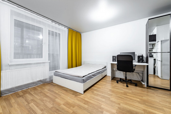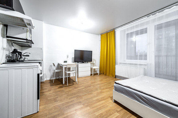 О КВАРТИРЕ: 27 кв. м (по факту) 26,2 по выписке, 14 этаж — светлая, тёплая, с панорамным балконом! Квадратная форма. Окна во двор, на юго-восток — тихо и солнечно. Есть вся бытовая техника и мебель (оставляем!). Есть все - заезжай и живи!