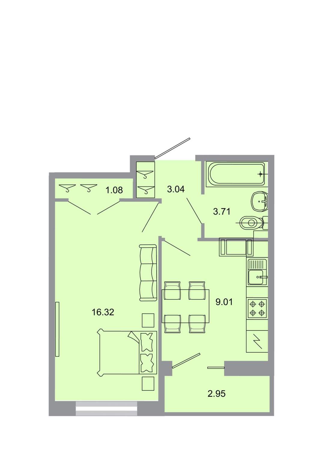 - Жилая площадь 17.1 м²