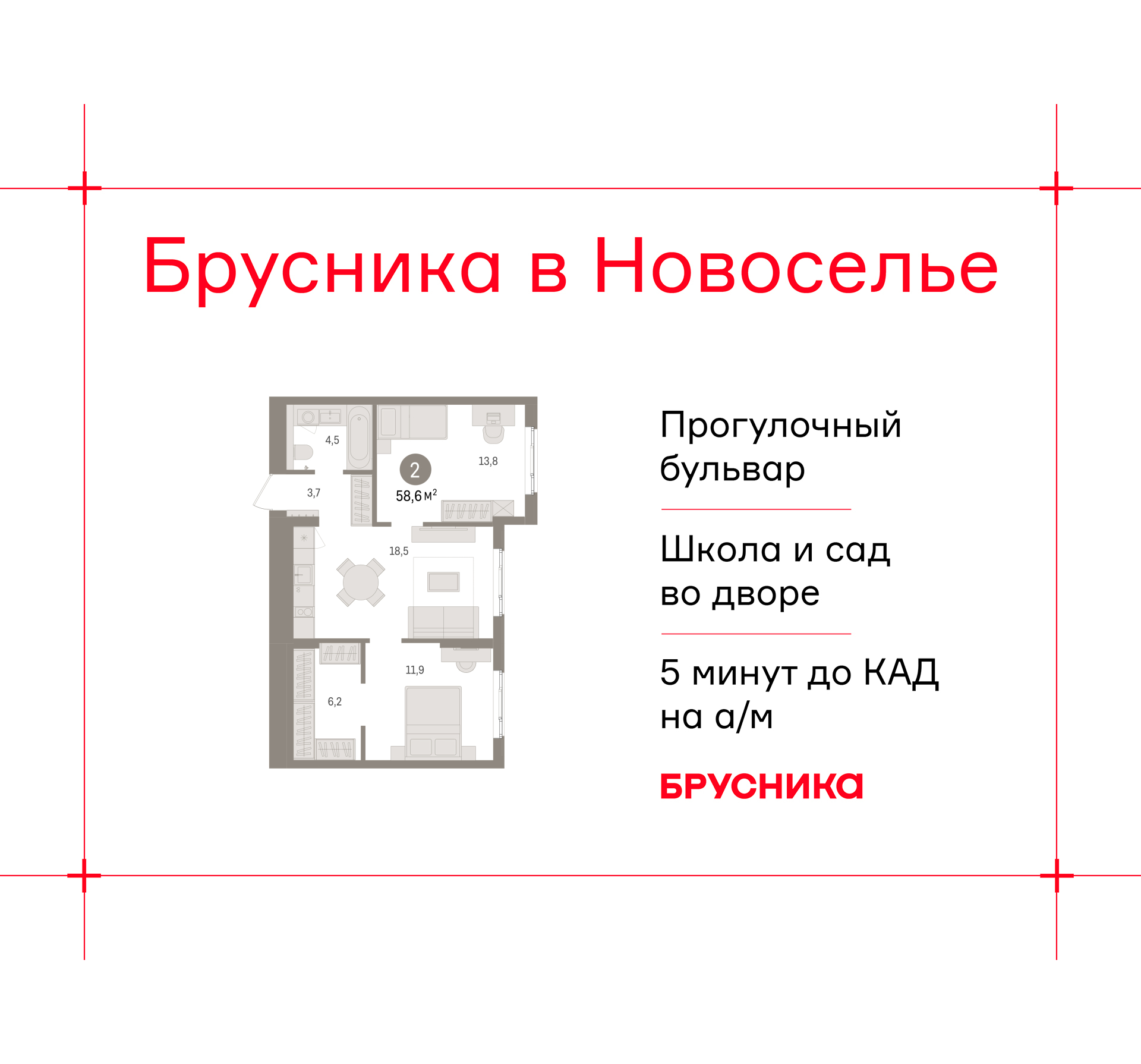 Спешите забронировать по акционной цене! Предложение ограничено! Стоимость квартиры указана со скидкой, ваша экономия составит 1,460,000 RUB. Информация по телефону, мы вам все подробно расскажем! Просторная двухкомнатная квартира с предчистовой отделкой в ЖК "Брусника в Новоселье" на 2 этаже. Общая площадь: 58.59 кв.м., жилая: 25.7 кв.м., площадь просторной кухни-столовой: 18.5 кв.м. Комнаты изолированные, все окна выходят на одну сторону. В квартире один совмещенный санузел. Высота потолков 2.7 м. Дом монолитный, многоподъездный, переменной этажности, от 8 до 9 этажей. Квартира находится в 10-й секции высотой 9 этажей в корпусе 2. На этаже 8 квартир. В подъезде 1 грузовой лифт. Окончание строительства - 4 квартал 2027 года. Оформление сделки по договору долевого участия. Новоселье — это городской поселок в Ломоносовском районе Ленинградской области. Он расположен в 5 км к югу от Финского залива, на самой границе региона. Вдоль поселка проходит Кольцевая автомобильная дорога, а сразу за ней начинается Санкт-Петербург — Красносельский район и Стрельна. Район зелёный и тихий, с разных сторон его окружают Шунгеровский заказник, Гореловский лес и дачные поселки. Есть вся необходимая инфраструктура: уже построенные детские сады, школы, клиники, торговые центры, ледовая арена. Так Новоселье сочетает в себе все преимущества городского комфорта и размеренной жизни рядом с природой. До выезда на КАД 5 минут, до ст. м. Ленинский проспект - 25 минут на а/м, до аэропорта Пулково - 30 минут на а/м. Брусника построит в Новоселье семь домов, в том числе башни и дома с разноуровневыми секциями. Высота зданий — от 8 до 12 этажей. Проект разделен на три очереди, на первом этапе мы возведём три дома в западной части квартала. В основе архитектурной концепции «Брусники в Новоселье» лежит лаконичность силуэтов и внимание к деталям. Мы разработали три фасадные темы, в основе которых лежит один прием — вертикальные и горизонтальные членения, реализованные за счет остекления балконов и лоджий, переменной этажности и цветового дробления фасадов. Выразительность последних достигается за счёт симметрии и использования декоративных элементов — карнизов и рамок вокруг окон. Входные группы мы заглубим относительно основной линии фасада, чтобы подчеркнуть входы в ритейл и места общего пользования. Материалы отделки будут приближены к натуральным. Первые этажи домов мы облицуем плиткой, имитирующей клинкерный кирпич. Кроме того, в проекте много террас, и все они разные: на первых этажах, на последних, угловые, с прямым фронтоном. Они расширяют пространство квартир и связывают их с природным контекстом. (AQID02510346)