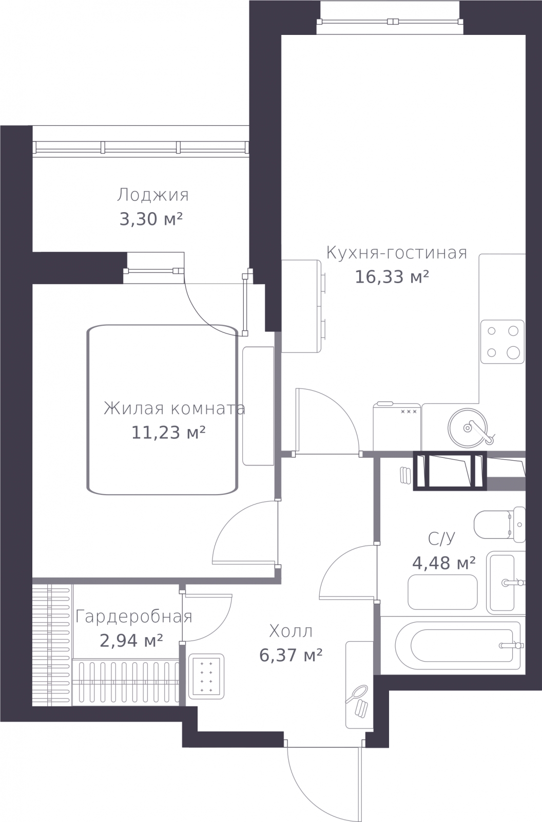 Торопитесь оформить бронирование по акционной цене! Предложение ограничено! Стоимость квартиры указана со скидкой, ваша экономия составит 2,201,943 RUB. Звоните, наши менеджеры вам все расскажут! 1-комн. квартира от застройщика в Veren Nort Сертолово на 7 этаже. Квартира без отделки, после оформления собственности можно делать ремонт. Общая площадь: 43 кв.м., жилая: 11.23 кв.м., площадь просторной куxни-гостиной: 16.33 кв.м. Все окна выходят на одну сторону. В квартире одна лоджия, один совмещенный санузел. Высота потолков 2.82 м. Квартира находится в корпусе 4. Дом монолитный, одноподъездный, высотой 11 этажей. На этаже 14 квартир. В подъезде 1 пассажирский и 1 грузовой лифт. Начало строительства - 3 квартал 2023 года. Окончание строительства - 4 квартал 2025 года. Оформление сделки по договору долевого участия. С лоджией, евро-планировка, с гардеробом, вид на приватный двор. Сочетание современной архитектуры и отличной экологии севера Лен. области. Выразительный облик домов разработан именитым архитектурным бюро «Остоженка». Характеристики жилого комплекса исключительны: продуманный ландшафтный дизайн, оригинальные парадные, разработанные по индивидуальному дизайн-проекту, современные детские и многофункциональные спортивные площадки, летний кинотеатр под открытым небом, два детских сада. Комплекс создается в уже сложившейся инфраструктуре г. Сертолово и обладает удобным транспортным сообщением с Санкт-Петербургом. В 300 метрах от «VEREN NORT сертолово» планируется транспортно-пересадочный узел «Сертолово», который обеспечит удобную железнодорожную связь с Финляндским вокзалом Санкт-Петербурга. (AQID02411770)